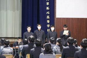 3学期は次の学年や就職・進学に向けての準備期間となります。ただ、1月は「行く」、2月「逃げる」、3月「去る」と言われるほど時間が早く過ぎていくので、時間を有効活用して努力を重ねていってもらいたいです。