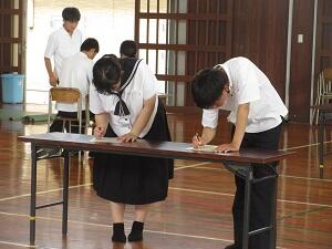 クラスマッチ終了後、新生徒会役員の任命式が行なわれました。
