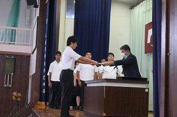 鬼塚校長から新生徒会役員の生徒一人一人に任命書が授与されました。緊張の面持ちで任命書を受け取り、これから学校運営を担っていく責任を感じたのではないかと思います。