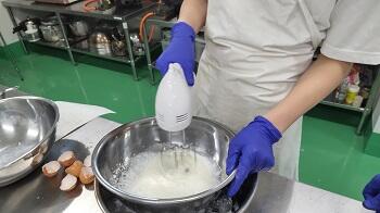 みんなで頑張ってフルーツタルトを作ってます