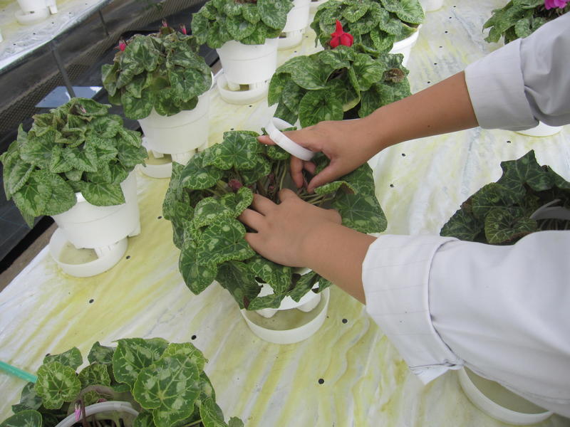 草花専攻生:「シクラメンの省力化栽培に関する研究」