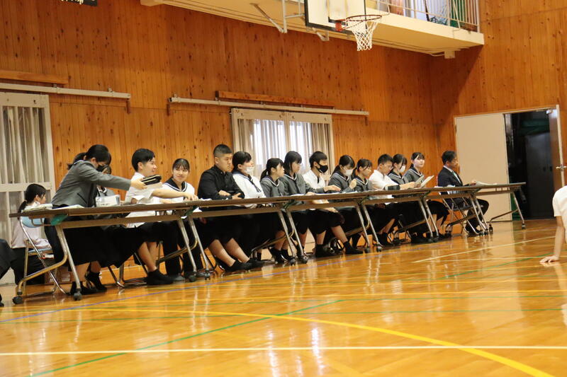 生徒会長が「これから始まる高校生活に対して期待や希望を持っているのと同時に慣れない環境に不安や悩みもあるでしょう。新たな人間関係の中で、新しい知識を学び、新たな自分を発見してください。県内唯一の水産系学科を有する学校として、日本の未来を担う我らの3年間は価値のあるものだと信じています。不安や疑問はいつでも先輩や先生方に相談してください。」と歓迎の言葉を贈りました。