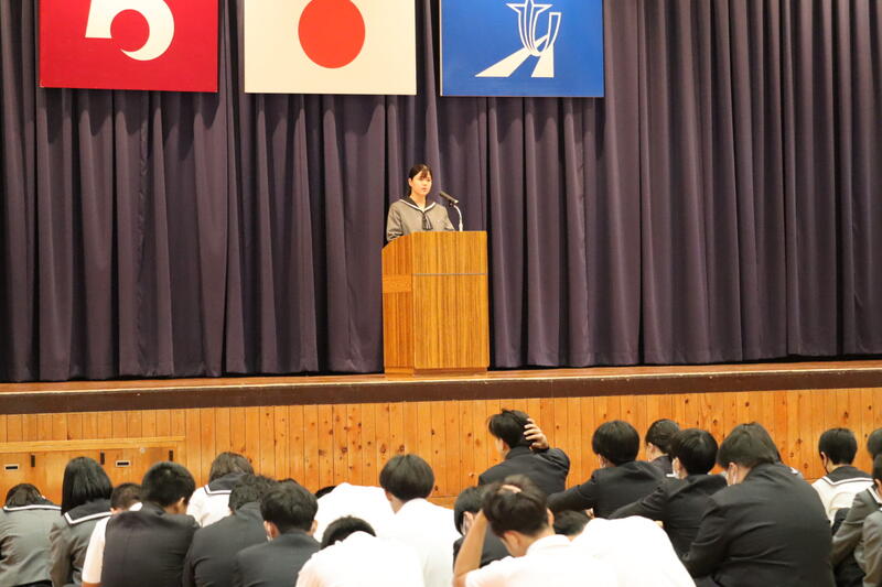 代表生徒が「講演の中で『今ここにいることが奇跡』という言葉が心に残った。これから自分も相手も大切にし、家族への感謝の気持ちを持って行動したい」とお礼の言葉を述べました。