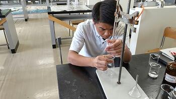 海洋科学科の職員室でワカメの赤ちゃんを嬉しそうに観察している職員がいました。