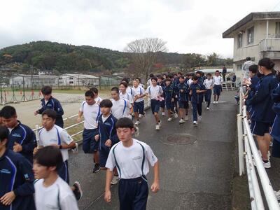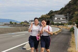 開会式では、両校舎の代表生徒が「それぞれの目標に向かって頑張りたい。日本一距離の離れた校舎制の学校だが、今日の走りで絆を結びつけたい」と力強く選手宣誓を行いました。気温が上がり汗だくなったり、マリン校舎に近づくにつれて強い風に吹かれるなか、沿道でたくさんの応援を受け仲間たちと励まし合い一人一人が自分の目標に向かってチャレンジしました。