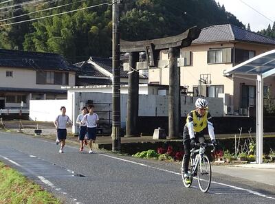 見学の生徒も大会運営に協力しました。また育友会のみなさまには、交通整理やチェックポイントでの給水など大変お世話になりました。沿道からのあたたかいご声援もありがとうございました。