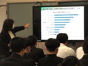 生徒たちは、大学での学びや仕事の内容、どのような高校生活を送っていたかなどを教えていただきました。今回の進路ガイダンスを自分の進路選択につなげていきましょう。