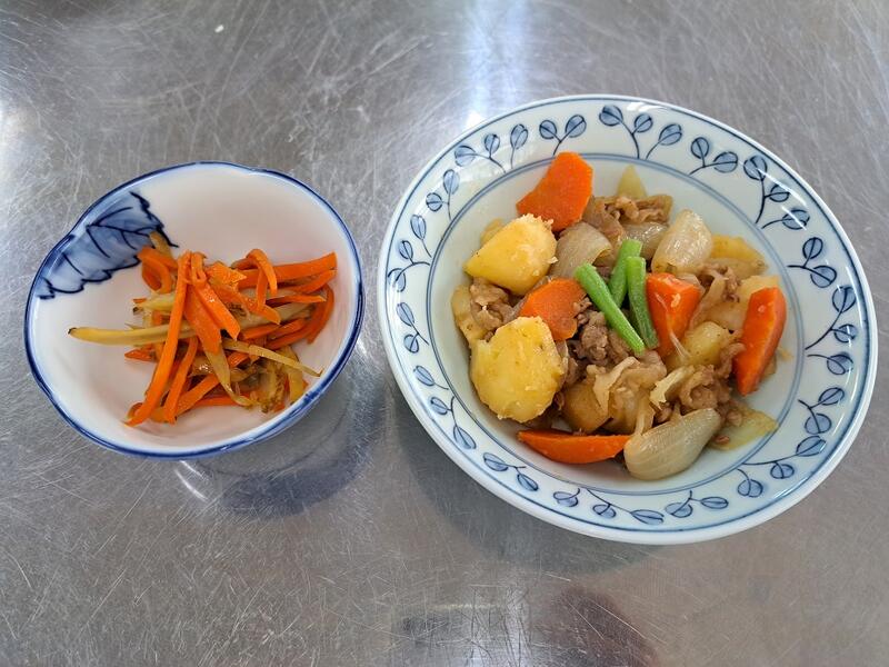 3年食品科学科の生徒がフードデザインの授業で炊き込みご飯とイサキの塩焼き・味噌汁を作りました。