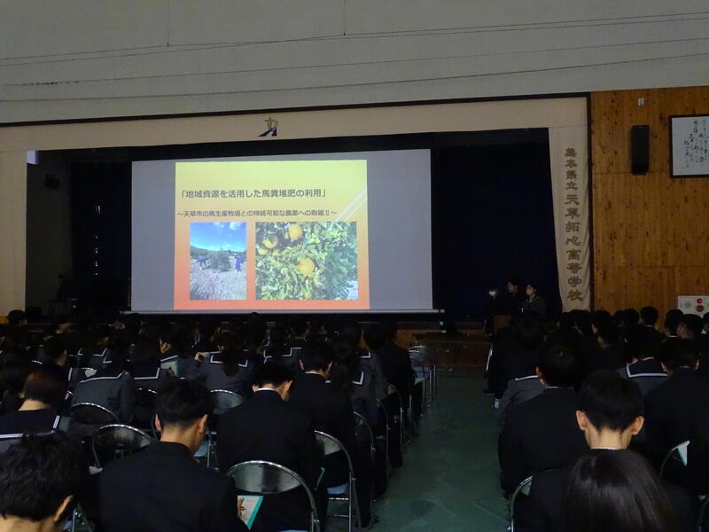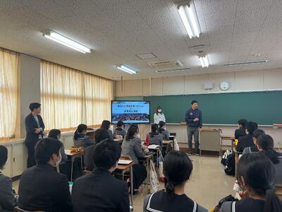 最後に代表生徒が「写真で事業の前後が分かり、知らなかったことを知る良い機会となった。今日の講演を活かして4月から学習する『課題研究』では、地域課題解決に取り組んでいきたい」とお礼の言葉を述べました。