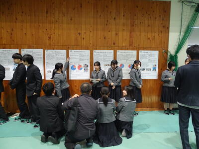 3年生各学科・コースの代表5組が地元の課題や地域振興や各学科の特色を生かした研究成果や今後の展望について発表しました。3年生は今後も探求心を持ち物事に取り組み、1・2年生は自分たちの研究に活かしていきましょう。
