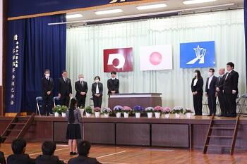 また、生徒代表謝辞では「先生方が私たちをサポートしてくださったおかげで、私たちは大々的な行事に全力で取り組むことができ成長することができました。またいつか先生方とお会いした時には成長した姿を見されれるように頑張っていきたいと思います。本当にありがとうございました。」と述べていました。