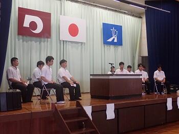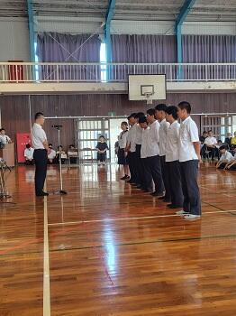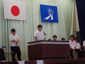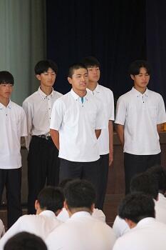 式では、全校生徒・教職員が見守る中、野球部キャプテンが力強く抱負を述べました。