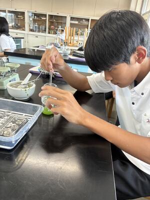 普段何気なく食べている食材を使った実験に生徒たちは興味を持ち、真剣に取り組んでくれました。