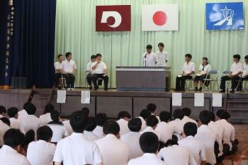 マリン校舎では、生徒会役員改選に伴い、立会演説会が行われました。