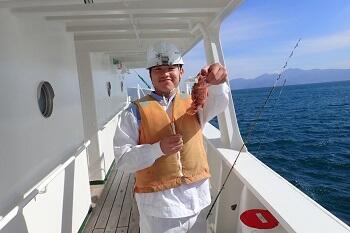 今回の航海では、釣獲実習を行っておりこの3日間ではミズイカやカサゴなどが釣れています。また、当直を行う際には、見張りや航海計器の使い方、海図の書き方などを乗組員の方々から教えていただきながら、立派な船舶職員になるべく勉強を頑張っています。