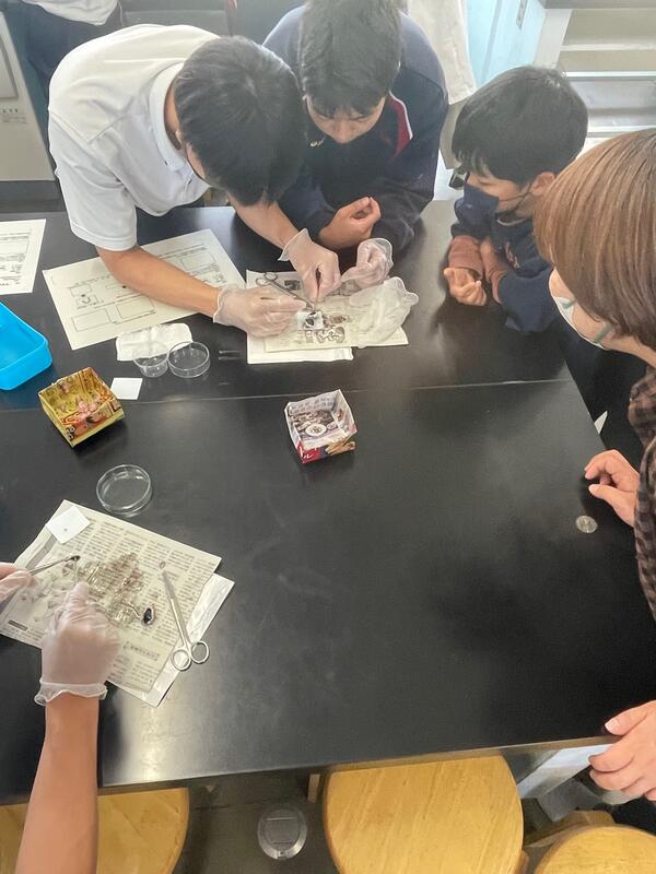 3年生「生物」の授業では、豚の眼球を解剖して目の構造を確認していました。