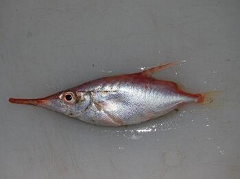 調査でダイコクサキブエという魚が大量に獲れたようです。ただ、その中にそっくりなフエフキという魚が混じっていて見分けるのが大変なようです(^_^;)