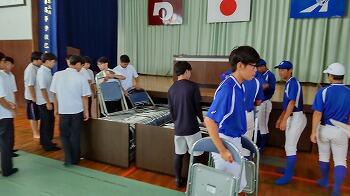 体育館の全体会会場の準備を、部活動生や生徒会の生徒達がお手伝いをしてくれたことで素早く準備することが出来ました。