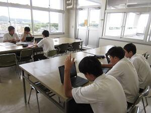 「天草の歴史」、「天草の観光・特産品」の2グループは、図書館で情報収集を行いました。Chromebook、書籍、パンフレットなど、それぞれのツールを活用し情報を集めます。