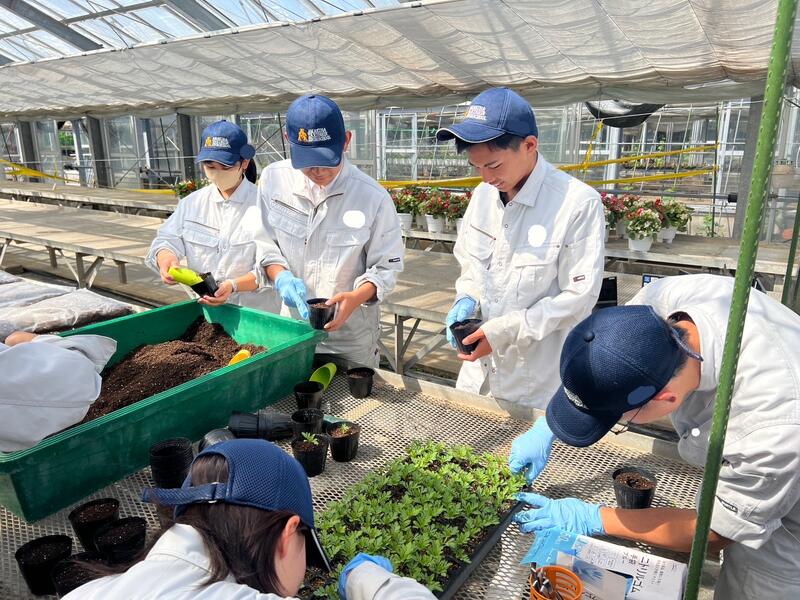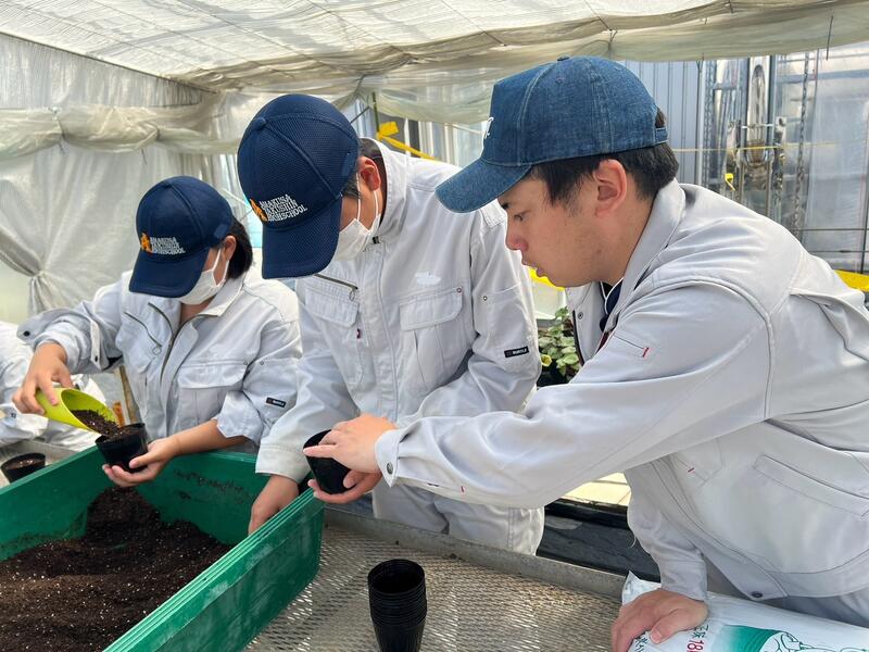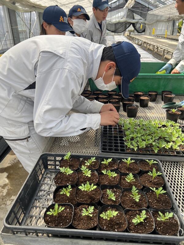 役割を交代し、鉢上げの仕方を伝授する場面も