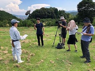 令和元年9月12日(木)本渡校舎果樹園において生物生産科3年生の果樹専攻生がKAB熊本の取材を受けました。今回の取材は、園芸科学科(現 生物生産科)卒業生の若手お茶農家 勘崎先輩を紹介します。