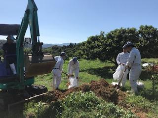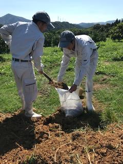 私たち果樹専攻は、9月19日に温州ミカンに張ってあるタイベックシートが風で飛ばされないようにするため、土嚢を作りました。
