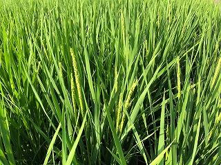お盆も終わり、残暑が厳しく連日暑い日が続きますが、水田では、イネが出穂期をむかえ、稲穂が出始めました。