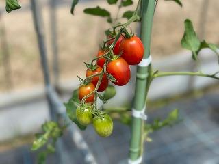 生物生産科1年生では、4月22日(木)にミニトマトの苗をコンテナに植え付けました。約2ヶ月がたち収量や糖度の測定調査を行いながら収穫の時期をむかえています。