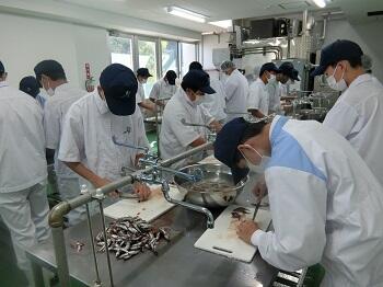 本日の水産海洋基礎では、天草市五和町で獲れた魚を使用したすり身づくりを行いました。