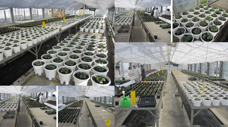 温室内に生徒たちの区画を決め、その中で1人約220鉢のシクラメンの栽培管理を行っています。基本的には自分が担当しているシクラメン以外は触りません。