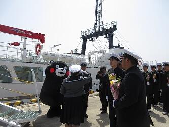 出港式には、くまモンが駆けつけてくれました。