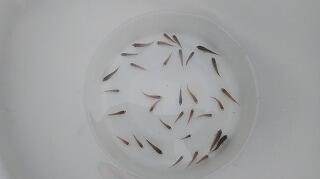 これまで大切に飼育してきたマダイ、クルマエビを地元の小学生と放流しました。小学生は、マダイやクルマエビの子どもを初めて見たようで興味深く観察していました。