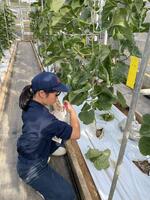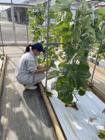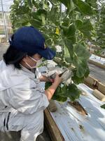 野菜専攻生がアールスメロンの収穫を行いました。