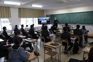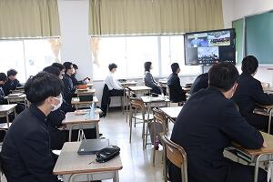 今日は本渡校舎体育館で出発式が行われ、マリン校舎とオンラインで繋ぎ参加しました。