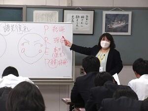 『3年生の0学期』と言われるこの時期に、採用で重視される点や非言語のコミュニケーションの大切さ、そして自分の経験を根拠とした未来へ繋がる『自己PRの書き方』、『笑顔』や『お辞儀』など実践を通して教えていただきました。最後に、代表生徒が「このガイダンスで学んだことを活かし、会社から必要とされる人材となれるよう高校生活を送っていきたい。」とお礼の言葉を述べました。