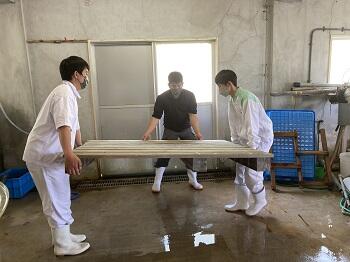 海洋科学科栽培系の生徒が、マダイ種苗生産の準備のために、初期餌料となるシオミズツボワムシ(以下ワムシ)の培養を開始しました。(ワムシは、魚の仔魚が最初に食べるのに適している動物プランクトンの一種で、増殖速度が速いことから種苗生産に広く用いられています。)