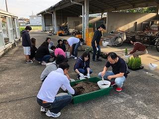 天草拓心祭育友会チャリティもちつき準備・寄せ植え展示【本渡校舎】
