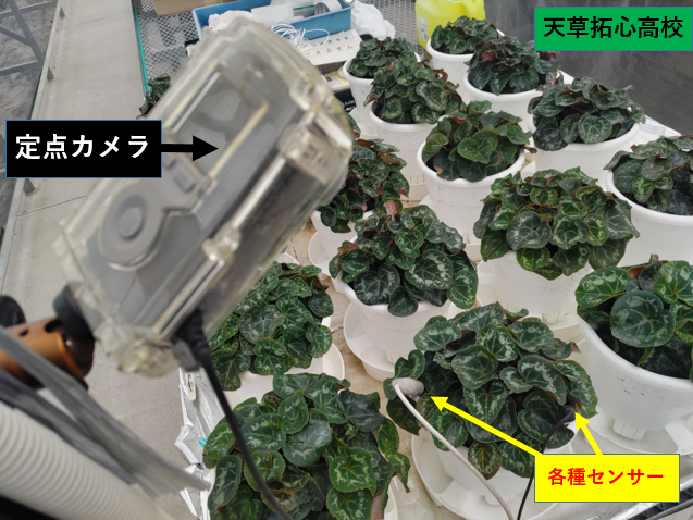 昨年から、本校のシクラメンは、FAJ(東京大田市場)で行われる全国花き品評会シクラメン部門の上位生産者(栃木県、福島県、千葉県)の技術を導入し、その研修先のデータを参考にして、IOTの活用による環境データの見える化で「スマート農業」に取り組んでいます。