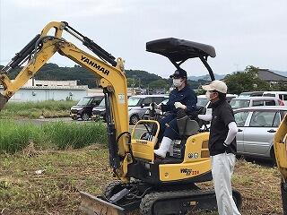 令和3年9月4日(土)~5日(日)本渡校舎生物生産科において小型車両系建設機械特別教育講習(機体重量3t未満)が行われ、生物生産科の受講生徒16名が講習を修了しました。4日(土)は学科講習が行われ、最後の筆記試験では全員70点以上を獲得し、合格しました。5日(日)は2機体のバックホウで実技講習が行われ、初めての機械操作に慎重しながらも運転操作を行いました。