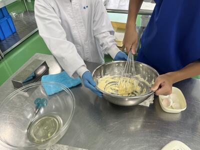 食品科学科の2・3年生に教えてもらいながら、一緒に製造していきます。