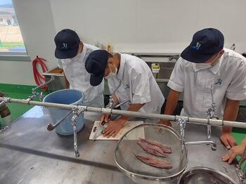 生徒の中には初めて魚をさばく生徒もおり不慣れながらも頑張ってさばいていました。