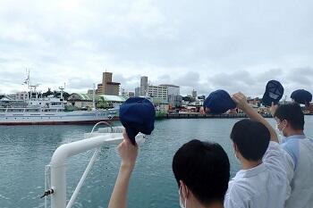 他県の実習船とすれ違い、手を振ってます(^∇^)