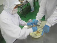 1つの班は晩柑果汁入りバームクーヘンを製造しました。