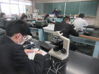 総合選択の授業のため9名と少ないですが、一人1台顕微鏡を使い、観察を行いました。