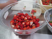 2年生・3年生で、イチゴジャムの製造工程の一つであるイチゴの前処理実習を行いました。