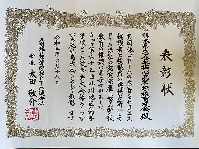 第65回九州地区高等学校PTA連合会(団体表彰)熊本県立天草拓心高等学校育友会