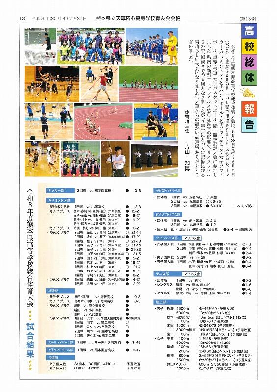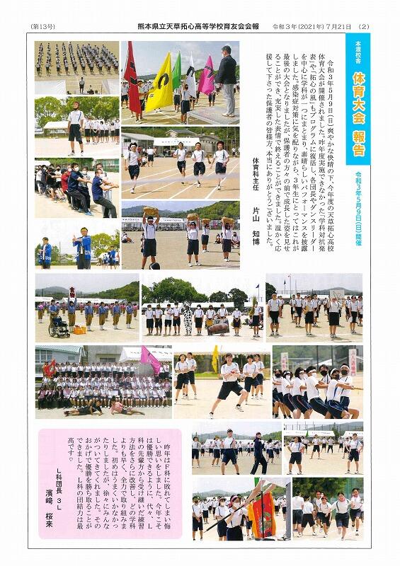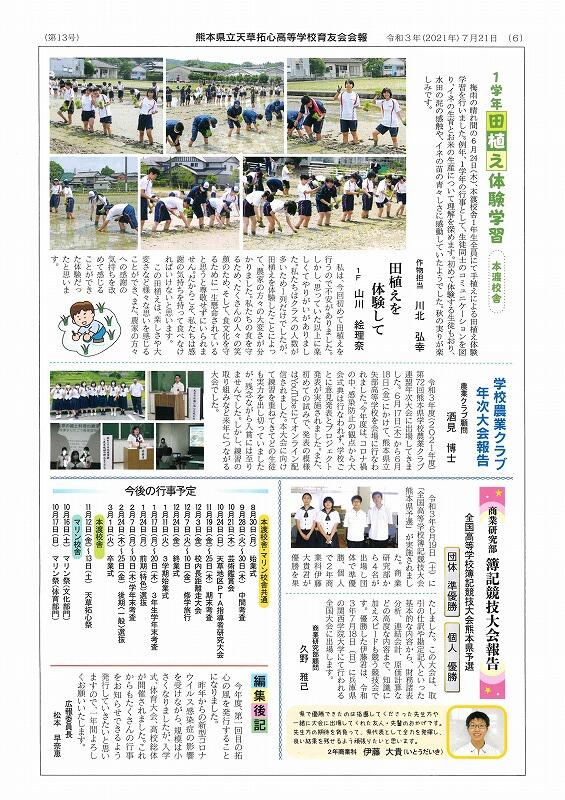 令和3年7月21日(水)本渡校舎・マリン校舎育友会より育友会会報「拓心の風」第13号が発行しました。入学式をはじめ、1学期の生徒活躍の様子が満載です。