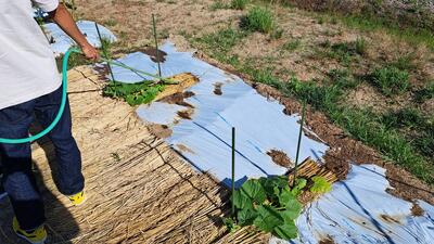 7月18日(木)ついにかぼちゃの苗を畑へ移しました!