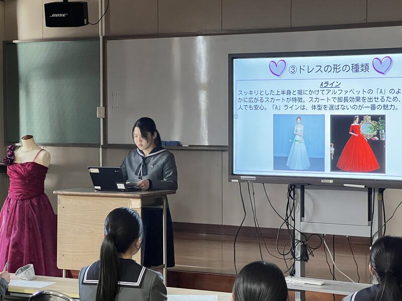 被服講座の生徒も自分の骨格やパーソナルカラーにあったドレス、逆に骨格やパーソナルカラーにとらわれない自分の”好き”を詰め込んだドレスなどそれぞれも思いが詰め込まれた発表となりました。