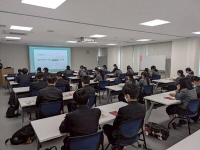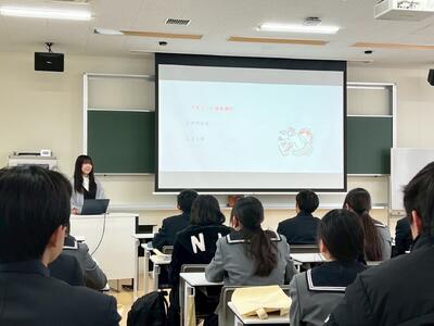 ➀さまざまな仕事や働き方を知ること ②自分を知り表現すること 自己PR ③コミュニケーションの基本 第一印象とマナー の3本立てで講演していただきました。今春には3年生になります。マナーや立ち居振る舞いを振り返り、自己PRできる要素もさらに増やしていきたいですね。職業情報提供サイトjobtagも活用してみましょう。